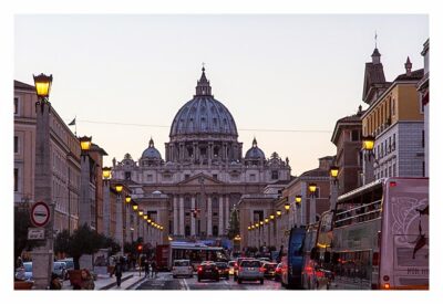 Das Wetter passt – es ist zwar sehr kalt, dafür scheint aber die Sonne und es ist trocken. Wir nutzen das Abendliche, um etwas an den Schienen in Richtung eines weiteren römischen Tradis zu laufen. Den Tradi können wir zwar nicht finden – dafür aber diesen tollen Blick auf den Vatikan.