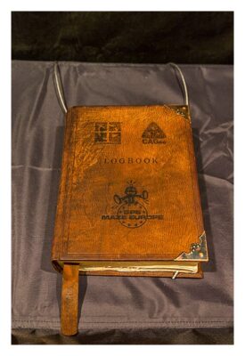 Danach gibt es noch dieses schöne in Leder gebundene Logbuch um den Besuch beim GPS-Maze Europe zu signieren.