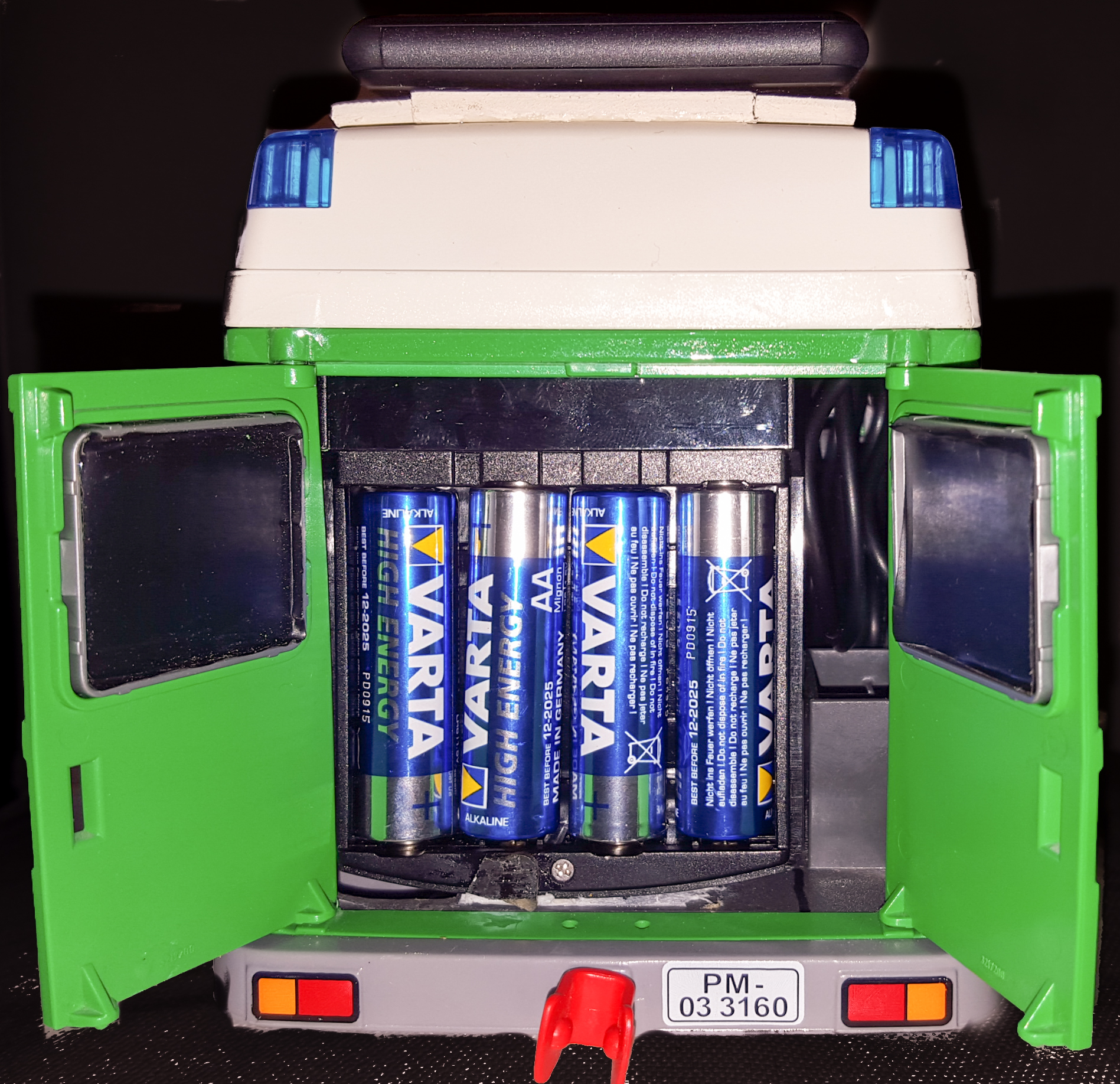 eddoblaster kümmerte sich um um die Finaldose, die gleichzeitig zum Wherigoplayer wurde – passend zum Thema hat er dafür ein grünes Polizeiauto besorgt und mit Lautsprecher, Smartphone und Tresor ausgestattet, um mit dieser grünen Minna den Wherigo spielen zu können.