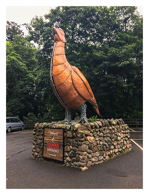 Um 15:45 Uhr erreichen wir die Glenturret Whiskey-Destillerie.Auf dem Parkplatz begrüßt uns der „famous grouse“ – der Name eines Blend Whiskeys, zu dem diese Destillerie ihren Beitrag leistet.
