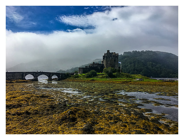 Ich habe Glück – hier ist wohl die erste Möglichkeit das Eilean Donan Castle zu sehen. Im Hintergrund taucht es aus dem Nebel auf.