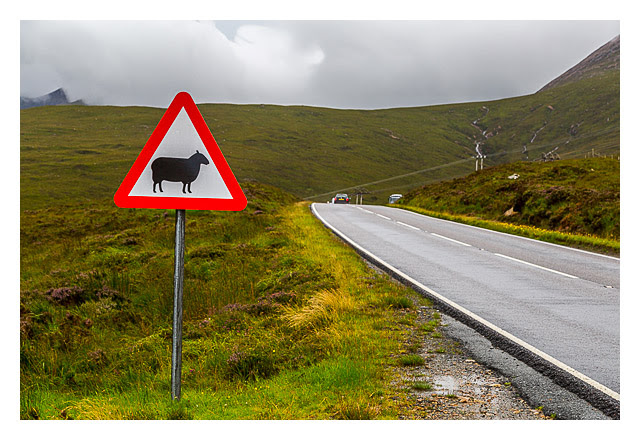 Kurz vor dem Loch Ainort halte ich noch einmal an. Ein Foto von einem Schafwarnschild fehlt mir noch in meiner Sammlung.