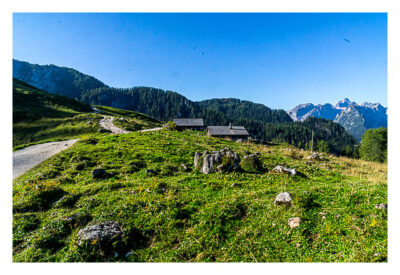 Auf der Almhochfläche ist der Fahrweg zu Ende und geht in einen Bergpfad über. Wir machen an der Priesbergalm eine längere Pause, da wir heute viel Zeit haben. Ich will nicht zu früh an der Gotzenalm ankommen.