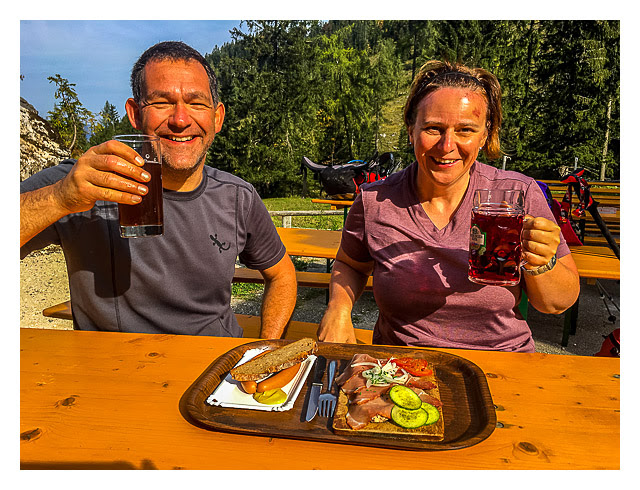 Jetzt kommt der gemütliche Teil. Zu erst einmal an der Gotzenalm ankommen und etwas Essen und Trinken. Hier oben läuft der Radler sehr gut!