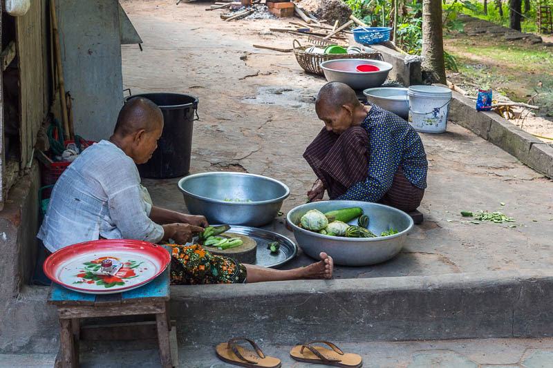 Beeindruckend finde ich die Steinarbeiten: Die Figuren und die Verzierungen drumherum sind sehr filigran gearbeitet. Auch heute gibt es noch ein kleines Kloster in unmittelbarer Nähe zum Tempel. Hier in diesem offenen Raum findet oft Unterricht statt.