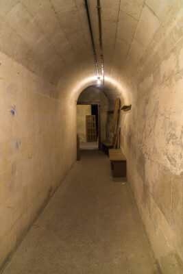 … dann erreichen wir den großen Lageraum. Im und nach dem Zweiten Weltkrieg wurden auch diese Räume vom Britischen Militär genutzt.