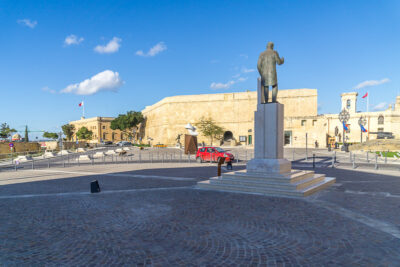 Auf dem Platz davor und darum sind einige Statuen berühmter maltesischer Politiker zu finden.