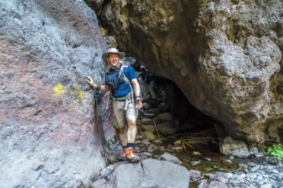 Der Pfad verläuft ab der Brücke meist auf dem Talgrund. An manchen Stellen müssen wir etwas über die Felsen „kraxeln“ und die Hände zur Hilfe nehmen – aber alles halb so wild – es ist keine Klettertour, sondern eine anspruchsvolle Wanderung.