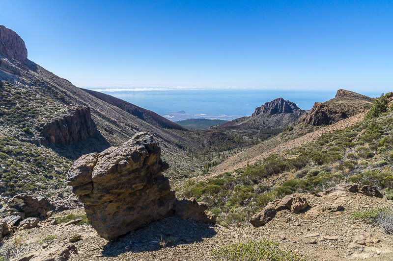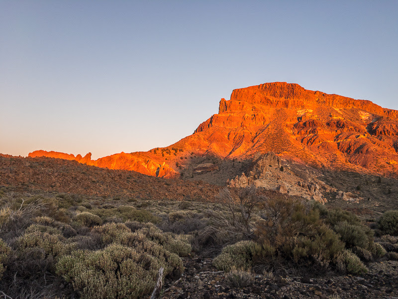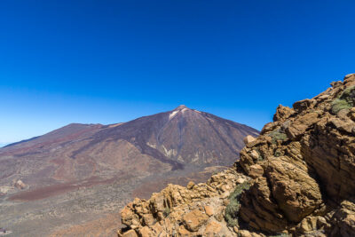 Langsam gewinnen wir an Höhe. Von unserem Weg aus sehen wir immer wieder den mächtigen Teide im Hintergrund: Dort oben wollen wir in zwei Tagen zum Sonnenaufgang sein!