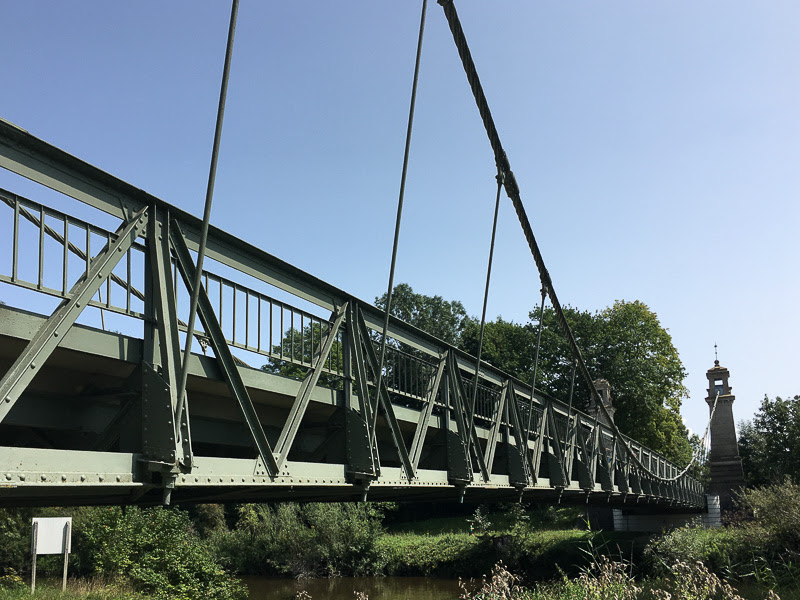 Kurz nachdem wir Langenargen passiert haben, kommen wir zu einer Hängebrücke, die wohl früher auch vom Autoverkehr genutzt wurde. Heute dürfen nur noch Fußgänger und Radfahrer die Brücke benutzen. An diesem Schmuckstück der Baukunst wurde der Tradi „Hängebrücke Langenargen“ versteckt. Auch diesen Tradi kann ich schnell und gut finden.