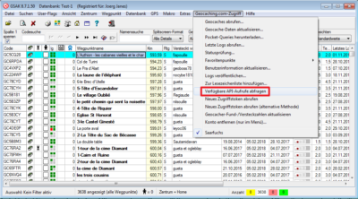 Ihr habt eine GSAK-Datenbank, die schon ein paar Wochen alt ist. Nehmen wir an, Ihr interessiert Euch nur für genau diese Geocaches. Über den Menüpunkt ‚Geocache-Daten aktualisieren‘ können diese Geocaches über die API auf den aktuellen Stand gebracht werden.