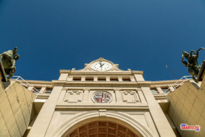 Von der Talstation laufen wir die zwei Kilometer zur Plaça Espanya. Dabei kommen wir am Olympia-Stadion vorbei.