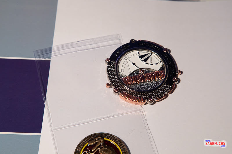 Durch das Einschieben des Trägers in die Hülle sind die ausgestellten Geocoins rundherum komplett eingeschlossen.