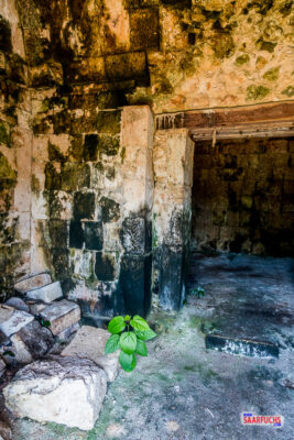 Natürlich macht mich dieses Gebäude neugierig, zumal ein kleiner Pfad durch die Büsche in seine Richtung führt. Ich folge dem Pfad und kann das kleine Gebäude betreten.