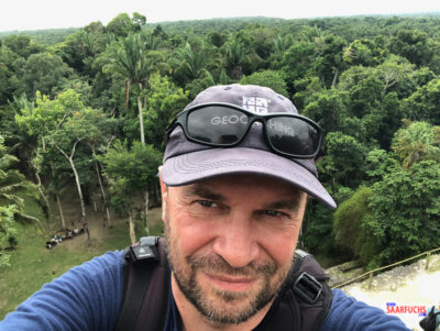 Wir überschreiten die Grenze nach Belize und übernachten in Belize City, wo wir unseren ersten Geocache in diesem Land suchen. Am nächsten Tag besichtigen wir die archäologische Zone von Lamanai, die wieder tief im Urwald liegt. Unsere Anfahrt mit dem Speedboot ist ein besonderer Nervenkitzel!
