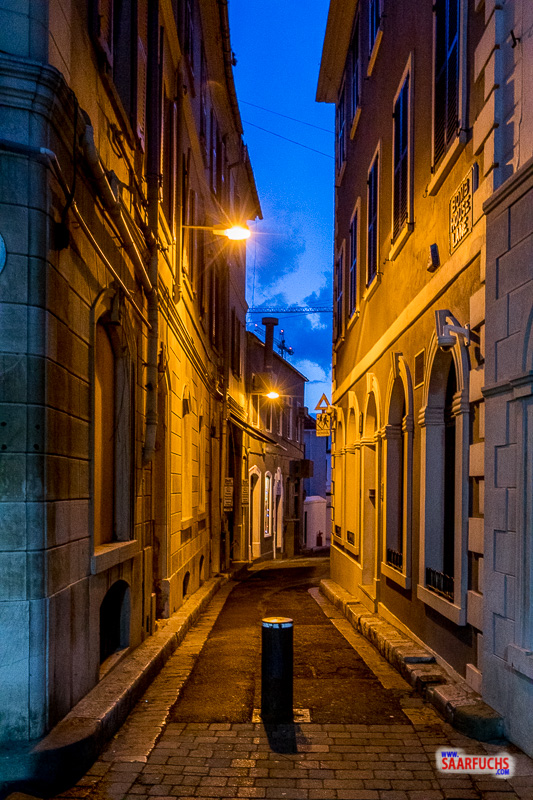 Langsam geht die Sonne unter. In der blauen Stunde haben die kleinen Gassen Ihren besonderen Charme.