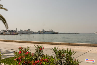 Wir erreichen das Meer. Die Promenade ist am Morgen schon recht voll – am Hafen sehen wir die vielen Fährschiffe, die in Split ablegen.