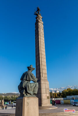 Auf dem Rückweg zu unserem Reisebus kommen wir an diesem Denkmal für einen kasachisch-sowjetischer Militäroffizier vorbei.