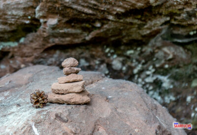 Wie so oft im Pfälzerwald finden wir auch hier ein kleines Steinmännchen, was wohl jemand aufgestellt hat, der sicherlich gewartet hat, bis seine Begleitung wieder vom Aussichtspunkt zurückkommt.