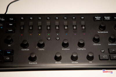 Weniger gut gefallen mir die weichen Tasten, die einfach nur billig auf mir wirken. Mit der Zeit habe ich mich an den fehlenden Druckpunkt gewöhnt und kann nun gut damit arbeiten. Gerne nutze ich auch die Tasten für „UNDO“, „Before After“ und „Screen Mode“.