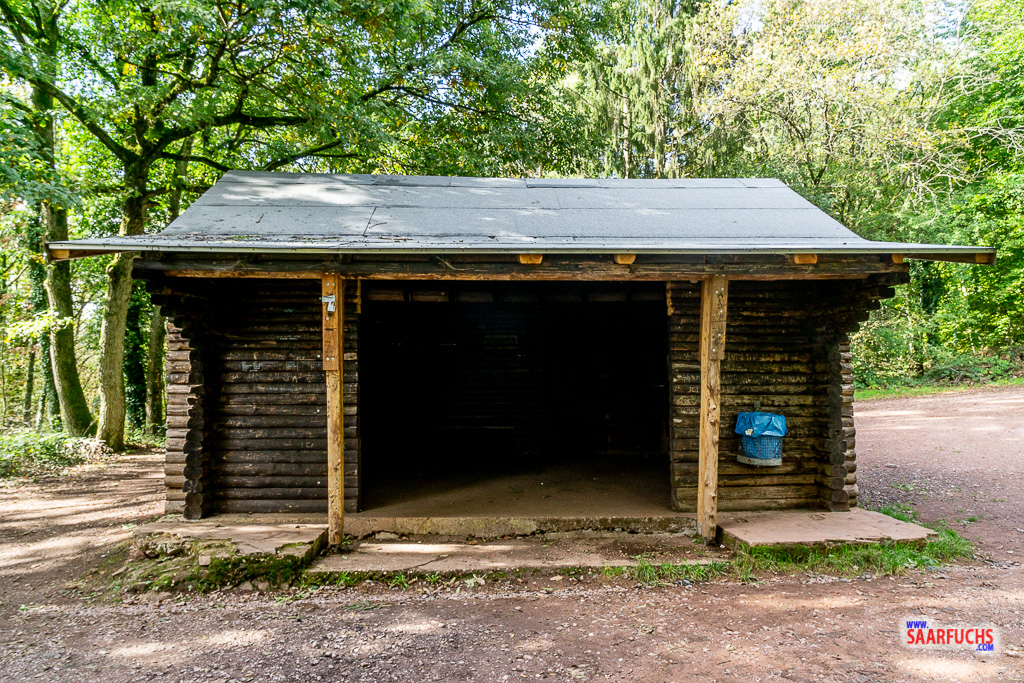 Einige Zeit später erreichen wir eine kleine Schutzhütte mit einem Aussichtspunkt. Als wir vor Jahren die Saarschleife-Tafeltour gelaufen sind, haben wir dort vor dem Regen Zuflucht gesucht.