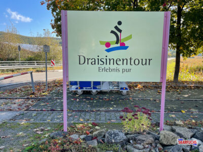 Nicht weit vom Saarland bietet der Landkreis Kusel eine Draisinentour an, bei der verschiedene Fahrraddraisinen zum Einsatz kommen. Es können kleine Draisinen (2 Personen strampeln und 2 Personen sitzen auf der Bank) und große Draisinen (3 Personen strampeln und 4 Personen sitzen auf der Bank) gemietet werden, die jeweils mit oder ohne Elektrounterstützung gebucht werden können. Die Fahrten werden von Mitte April bis Ende Oktober angeboten. Die Details könnt ihr auf der Homepage der Draisinentour nachlesen.