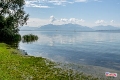 Nun wechseln sich Felder, Wiesen und kleine Ortschaften ab. Oft fahren wir ganz dicht am Chiemsee vorbei und bleiben ein paar Mal stehen, um ein paar Fotos zu machen.