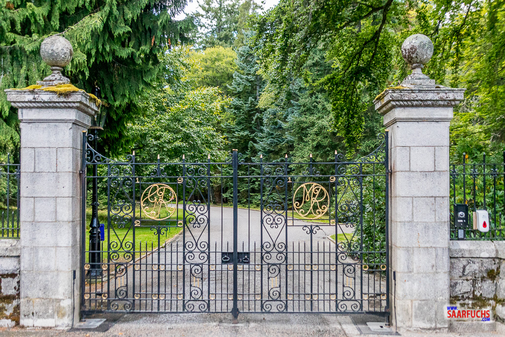 Gegen viertel nach vier Uhr erreichen wir den Besucherparkplatz am Balmoral Castle, dem Sommersitz der Queen. Da der Parkplatz fast leer ist, befürchten wir das schlimmste. Wir laufen über die Brücke zur Einfahrt des Schlosses.