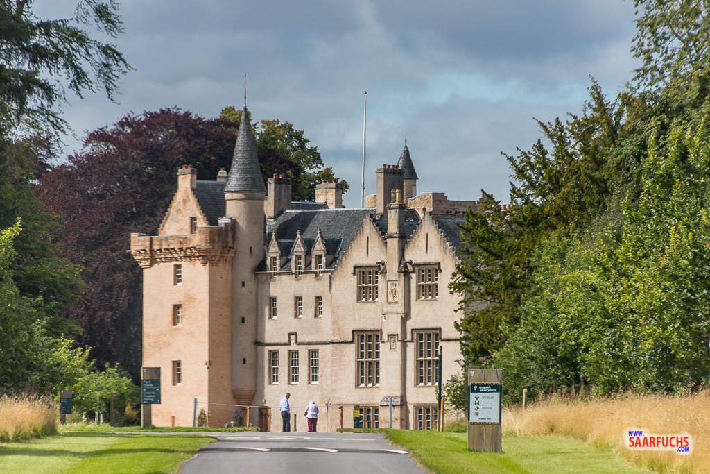 Nach etwa eineinhalb Stunden setzen wir unseren Roadtrip fort und halten kurz am Brodie Castle. Vom kostenlosen Parkplatz sind es nur ein paar Schritte bis zum Schloss.
