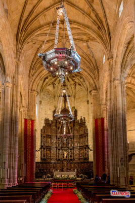 Nachdem wir die Aussicht genossen haben, steigen wir wieder hinunter und schauen uns weiter in der Kathedrale um. Der aus Holz geschnitzte Altar ist sehr beeindruckend.
