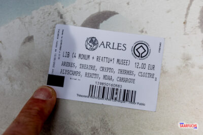 Als Erstes laufen wir von der historischen Altstadt weg in Richtung Südsüdwesten. Dort befindet sich der Eingang zu „Les Alyscamps“, der ehemaligen Gräberstraße von Arles. Am Kassenhäuschen lesen wir, dass ein Ticket angeboten wird, mit dem wir in alle Sehenswürdigkeiten kommen, die wir uns heute anschauen wollen: Es kostet uns nur 12€ pro Person, was ich persönlich echt günstig finde.