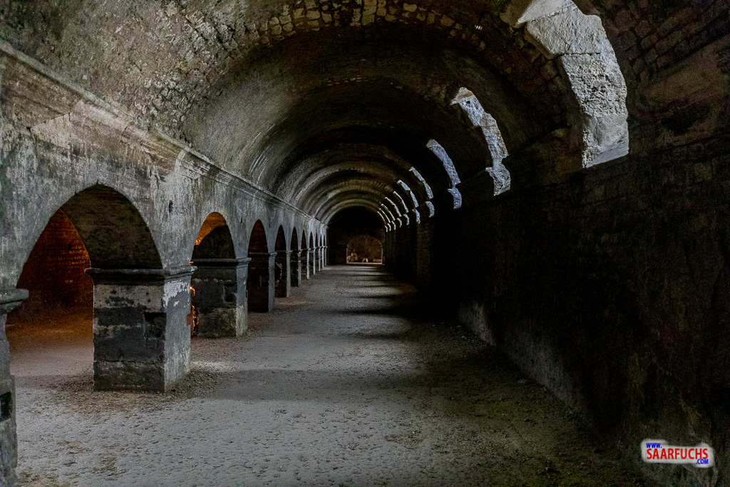 Leider sind diese ehemaligen Lagerräume und Gänge fast leer. Lediglich ein paar Informationstafeln wurden hier unten aufgestellt.