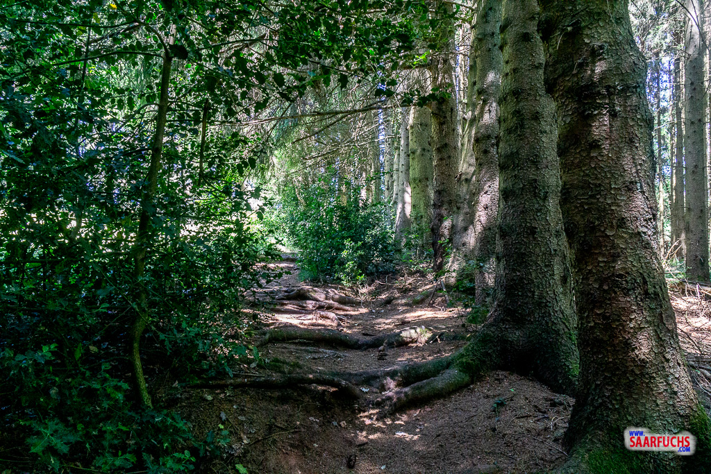Danach folgt ein kurzes Stück durch einen Nadelwand mit recht knorrigen Wurzeln.