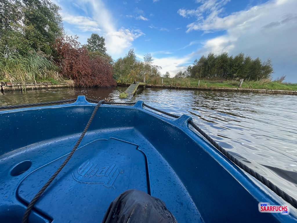 Gegen 9:20 Uhr stellen wir unseren Wagen auf den großen kostenlosen Parkplatz, den ich Euch unten in der Karte markiert habe. Von dort sind es nur wenige Minuten bis zum Bootsverleiher. Auf Nachfrage bekommen wir den Code, der die Tür zu den sanitären Anlagen öffnet. Im Büro werden zunächst unsere Reservierung überprüft und dann bekommen wir „unser“ Boot gezeigt. Bis dahin alles recht problemlos.
