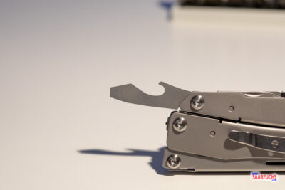 Das Multi-Tool hat keine Griffschalen – es besteht komplett aus Metall. Auf der Oberseite sind „Löcher“ in den Rahmenelementen, die das Gewicht etwas reduzieren und das Tool etwas griffiger machen.