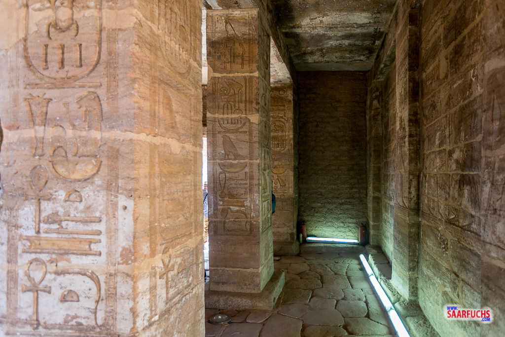 Auch der Tempel von Amada wurde versetzt und wieder hier aufgebaut. Wir kommen zu einem von außen recht unscheinbaren Gebäude.