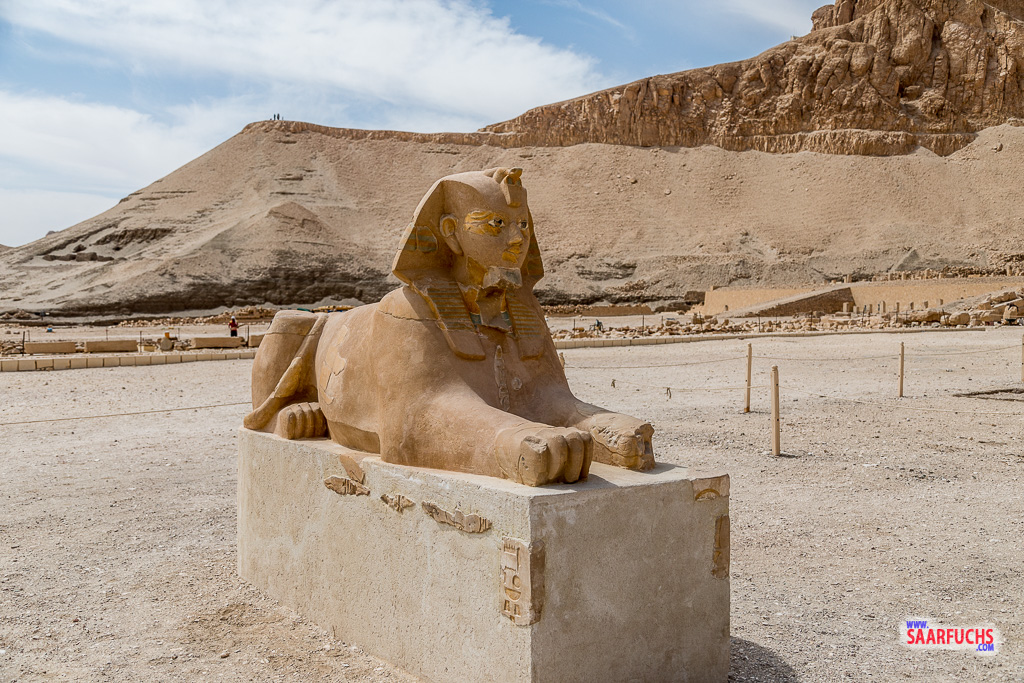 Danach laufen wir gemütlich zum Tempel, vorbei an einigen Sphingen, die hier entlang unseres Weges aufgestellt wurden.