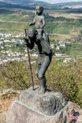 Am Rossstein geht unser Weg in einen felsigen Wanderpfad über. Hier geht es in kleinen Serpentinen nach unten. Dabei kommen wir an einer kleinen Statue vorbei.