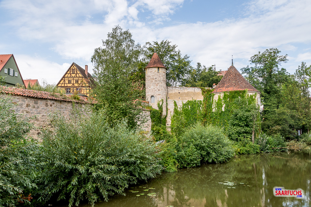 Am Ende der Gasse verlasse ich die historische Altstadt erneut, überquere die Wörnitz und schlendere außen an der Stadtmauer vorbei.