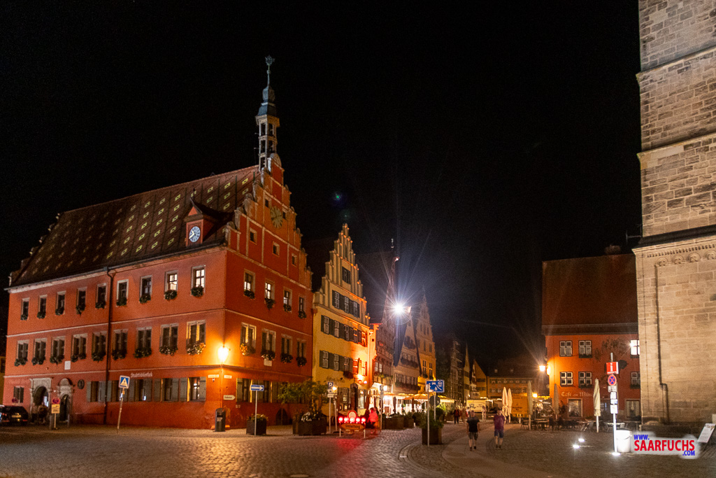 Nach dem Abendessen drehe ich eine weitere Runde durch das beleuchtete Dinkelsbühl.