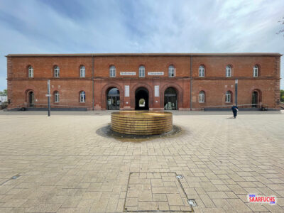 Etwas weiter kommen wir zum Fachmarktzentrum Stadtkaserne, welches teilweise in den historischen Gebäuden untergebracht ist. Wir kaufen uns dort einen Mittagsimbiss und setzen unseren Rundgang Richtung Süden über den Parkplatz fort.