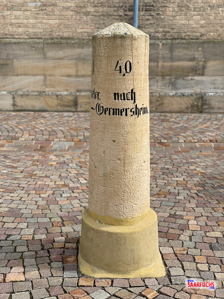 Auf seinem Vorplatz wurde ein ehemaliger Kilometerstein aufgestellt, der einmal die Entfernung nach Germersheim angezeigt hatte.