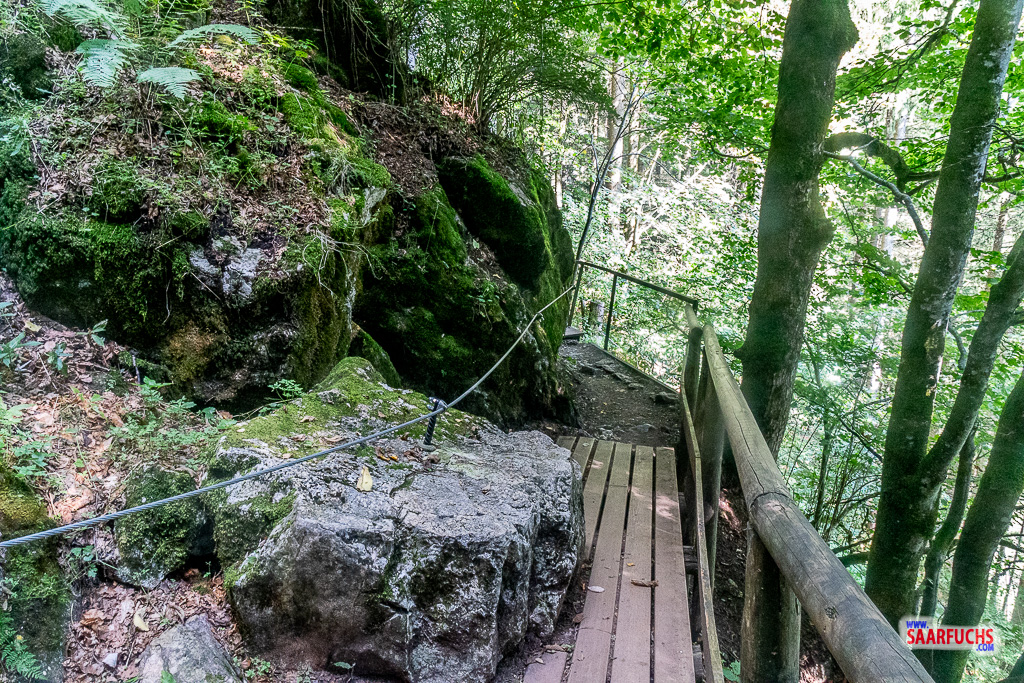 Einige Teile des Weges sind mit Drahtseilen und Holzstegen gesichert.
