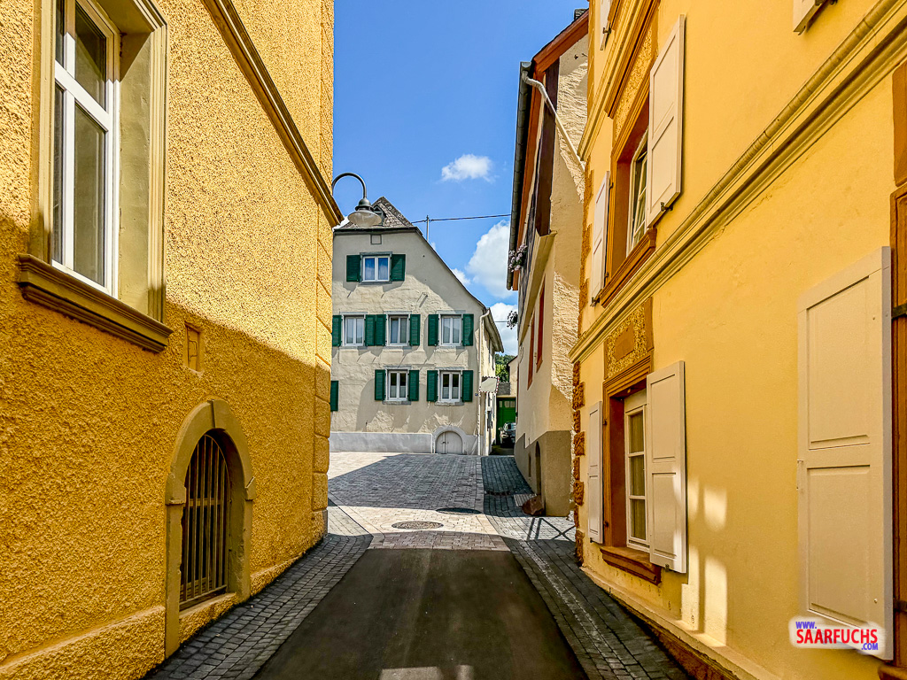 Kurze Zeit biegen wir links ab und verlassen das Moselufer. Unser Radweg führt uns nun durch Wintrich, einen kleinen Ort mit schönen Fachwerkhäusern.