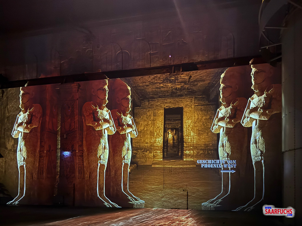 „Phoenix des Lumières“ präsentiert die immersive Ausstellung „Im Reich der Pharaonen“, produziert von Culturespaces Studio. Die faszinierende Inszenierung entführt die Besucher in die Welt des alten Ägypten, wo sie die monumentale Pracht der Pyramiden, den Zauber des Nils und die faszinierende Kultur der Pharaonen erleben können. Im Mittelpunkt der Ausstellung stehen bedeutende Herrscher wie Tutanchamun, Ramses II. und Nofretete sowie die beeindruckenden Kunstwerke, Reliefs und Skulpturen dieser Epoche. Unter der künstlerischen Leitung von Virginie Martin, der Inszenierung von Cutback und der musikalischen Begleitung von Start-Rec verspricht die Ausstellung ein geheimnisvolles Abenteuer für die ganze Familie zu werden.