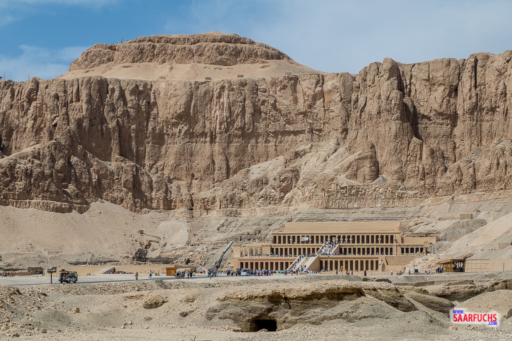 Kurze Zeit später erscheint der Totentempel der Hatschepsut an der Wand, der sich unweit vom Tal der Könige befindet.
