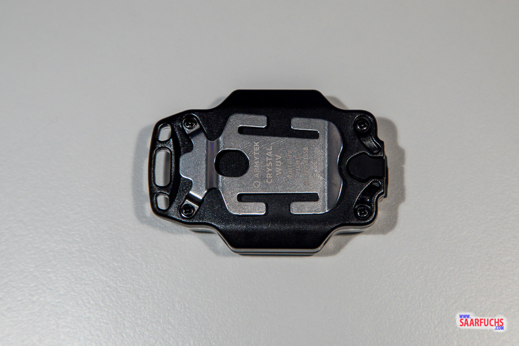 Um die Lampe befestigen zu können, befinden sich auf der Unterseite ein großer Gürtelclip aus Metall und an der Seite drei Ösen für die mitgelieferte Schlaufe oder für einen Schlüsselring, der allerdings nicht beiliegt. Die Schlaufe ist so groß, dass sie als Handschlaufe oder als Lanyard benutzt werden kann.