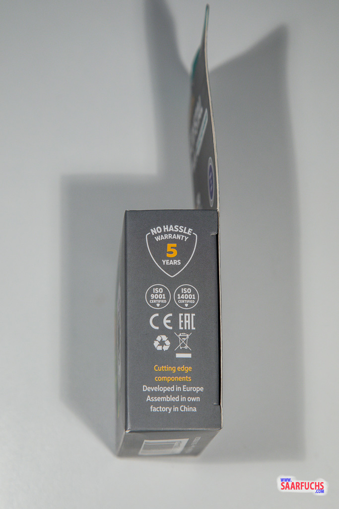 Die kleine Schlüsselbundleuchte wird in einer kleinen Box aus Pappe geliefert, die dieses Mal keinen Einschub aus Plastik besitzt.