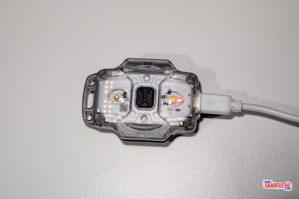 Auf der den Ösen gegenüberliegenden Seite ist unter einer Gummikappe ein Mikro-USB-Stecker zu finden, so wie bei den älteren Android-Smartphones.