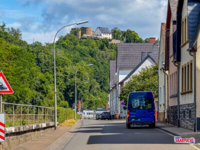 Kurz nach elf Uhr erreiche ich den Stadtrand von Kirn und kann schon die Kyrburg oberhalb des Ortskerns sehen.
